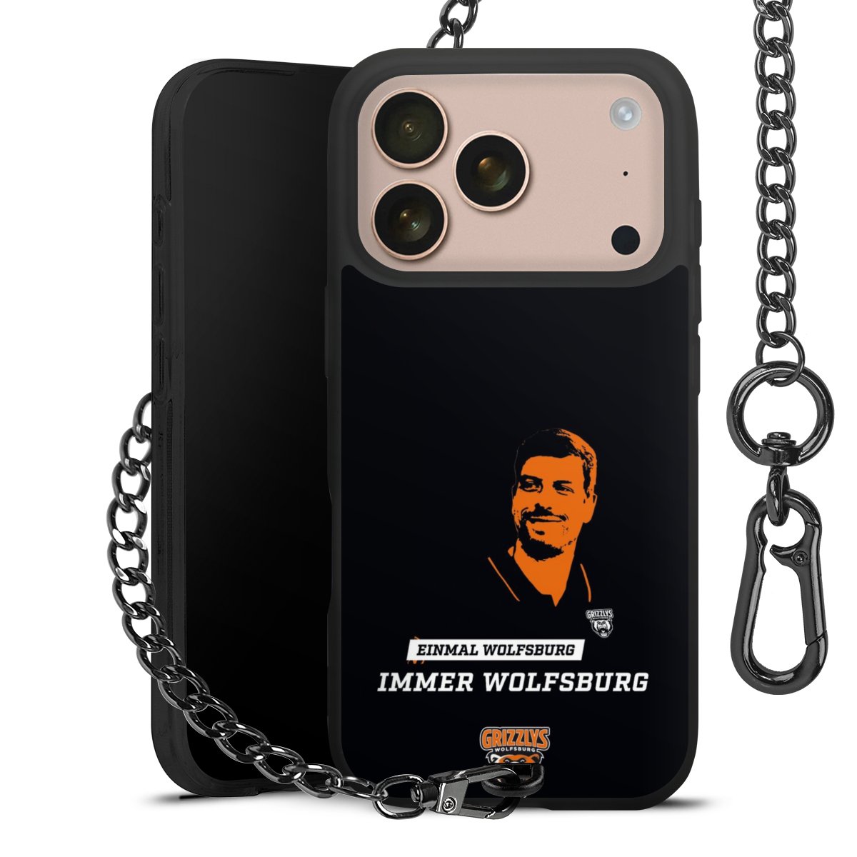 - Mattschwarze Handyhülle mit Metallkette