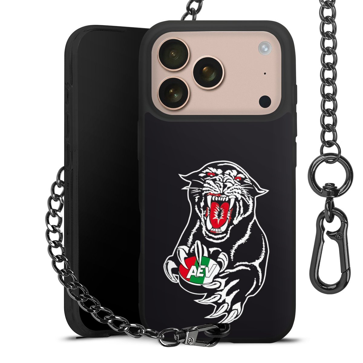 Die mattschwarze Silikon-Handyhülle besteht aus robustem TPU (thermoplastisches Polyurethan). Sie ist flexibel und schützt Dein Smartphone vor Stößen und Kratzern. Die Kette sowie der Karabinerhaken sind aus Metall in Gunmetal-Optik gefertigt. Für dieses Produkt kommen ausschließlich TÜV-geprüfte Materialien zum Einsatz.