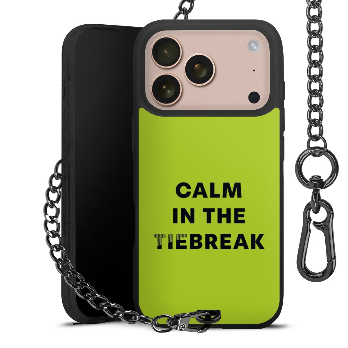 - Mattschwarze Handyhülle mit Metallkette