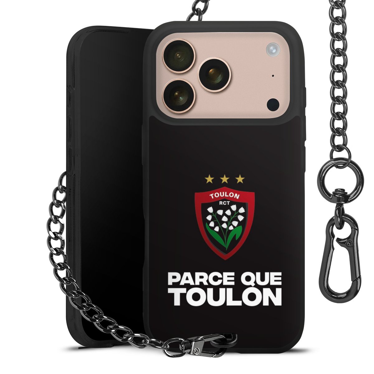 • Mattschwarze Handyhülle mit Metallkette