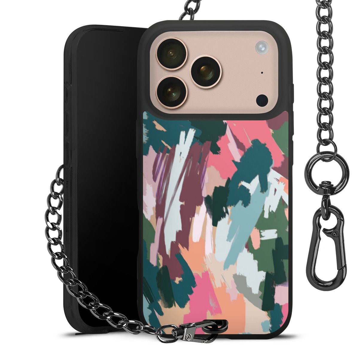 • Mattschwarze Handyhülle mit Metallkette