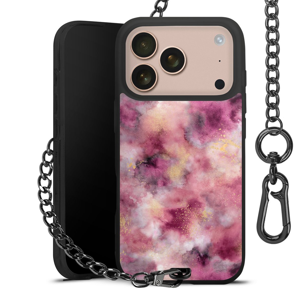 • Mattschwarze Handyhülle mit Metallkette