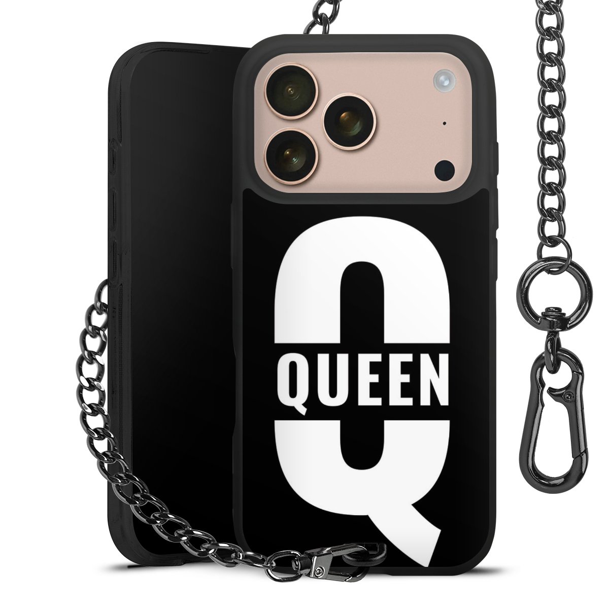 - Mattschwarze Handyhülle mit Metallkette