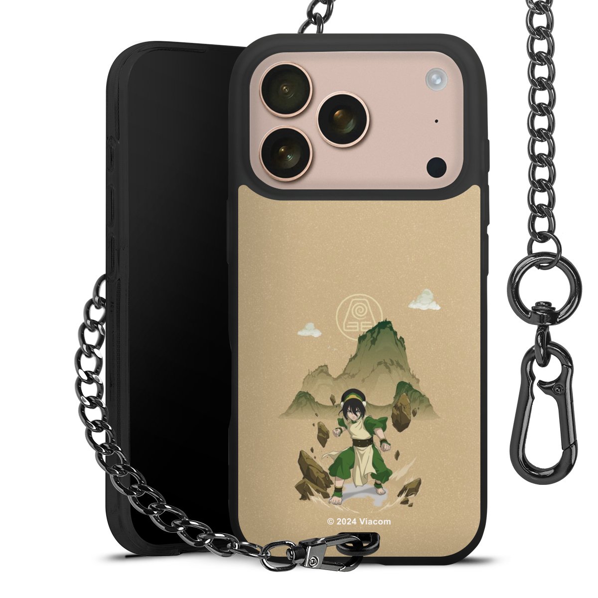 - Mattschwarze Handyhülle mit Metallkette
