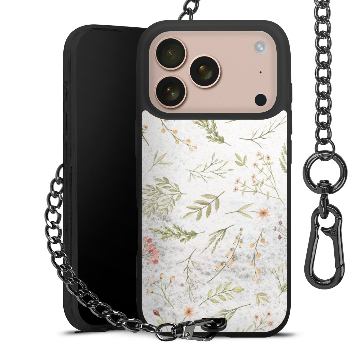 • Mattschwarze Handyhülle mit Metallkette