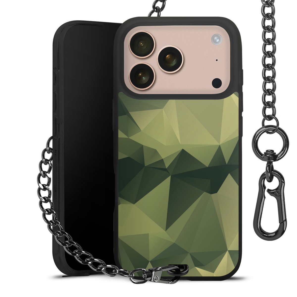 • Mattschwarze Handyhülle mit Metallkette