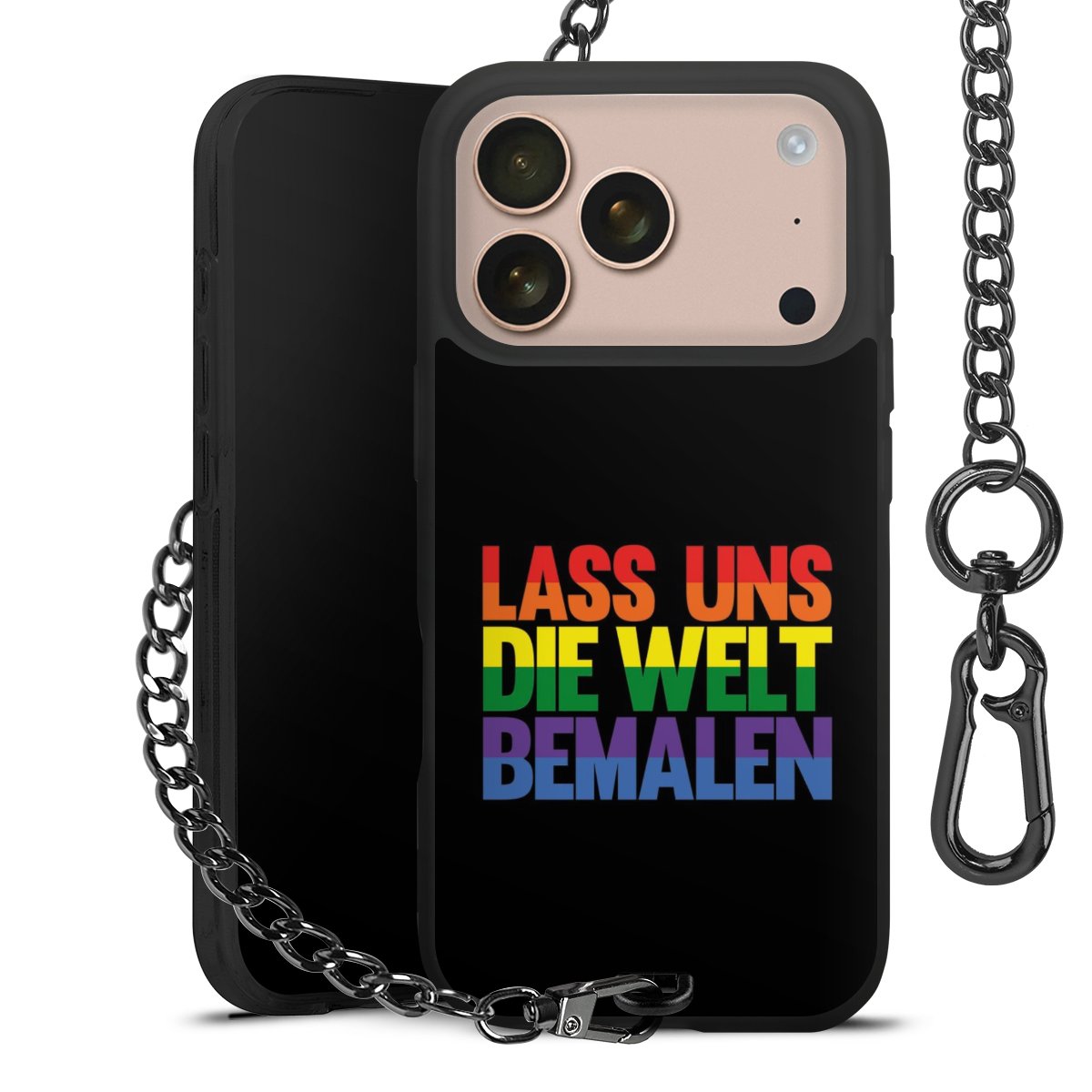 • Mattschwarze Handyhülle mit Metallkette
