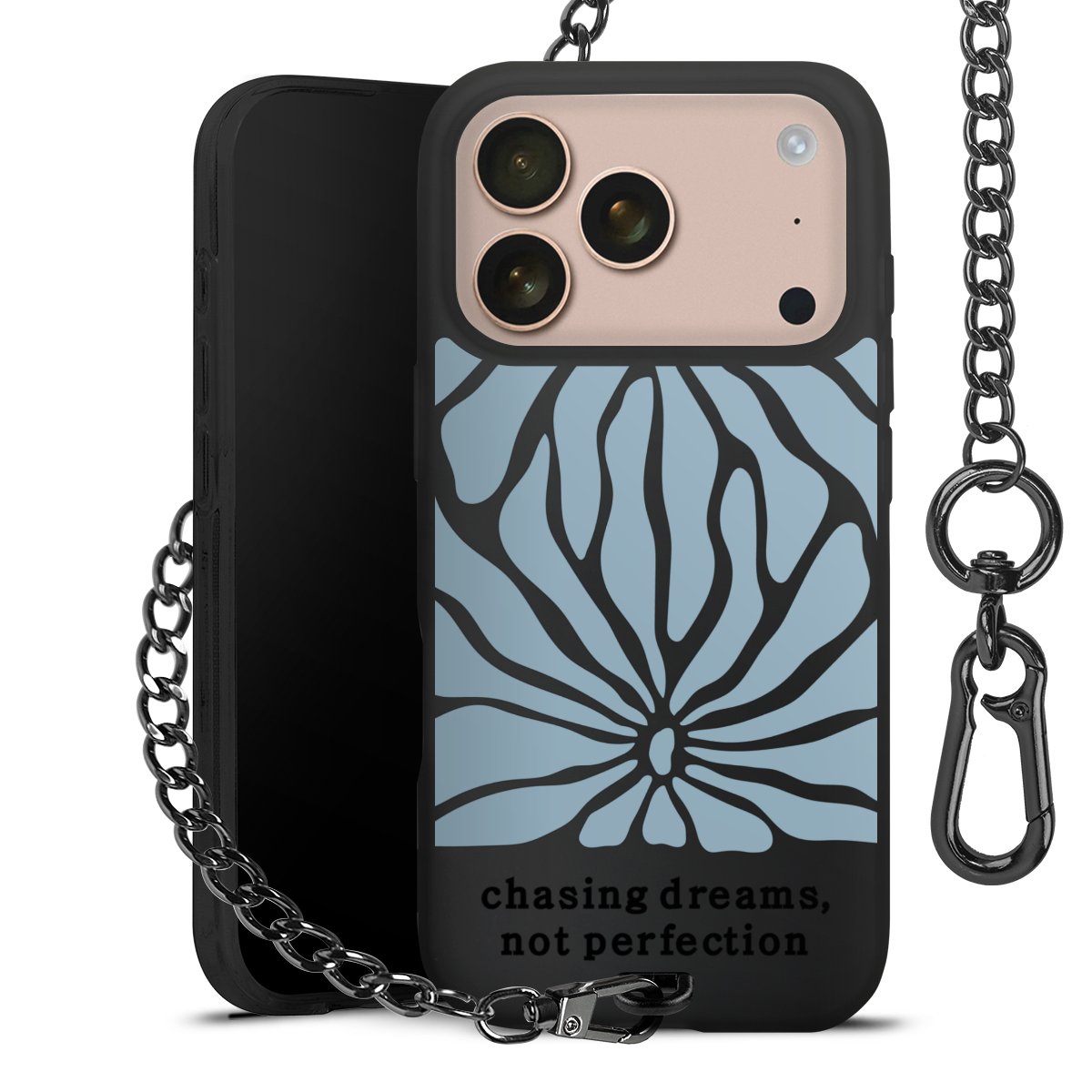 - Mattschwarze Handyhülle mit Metallkette