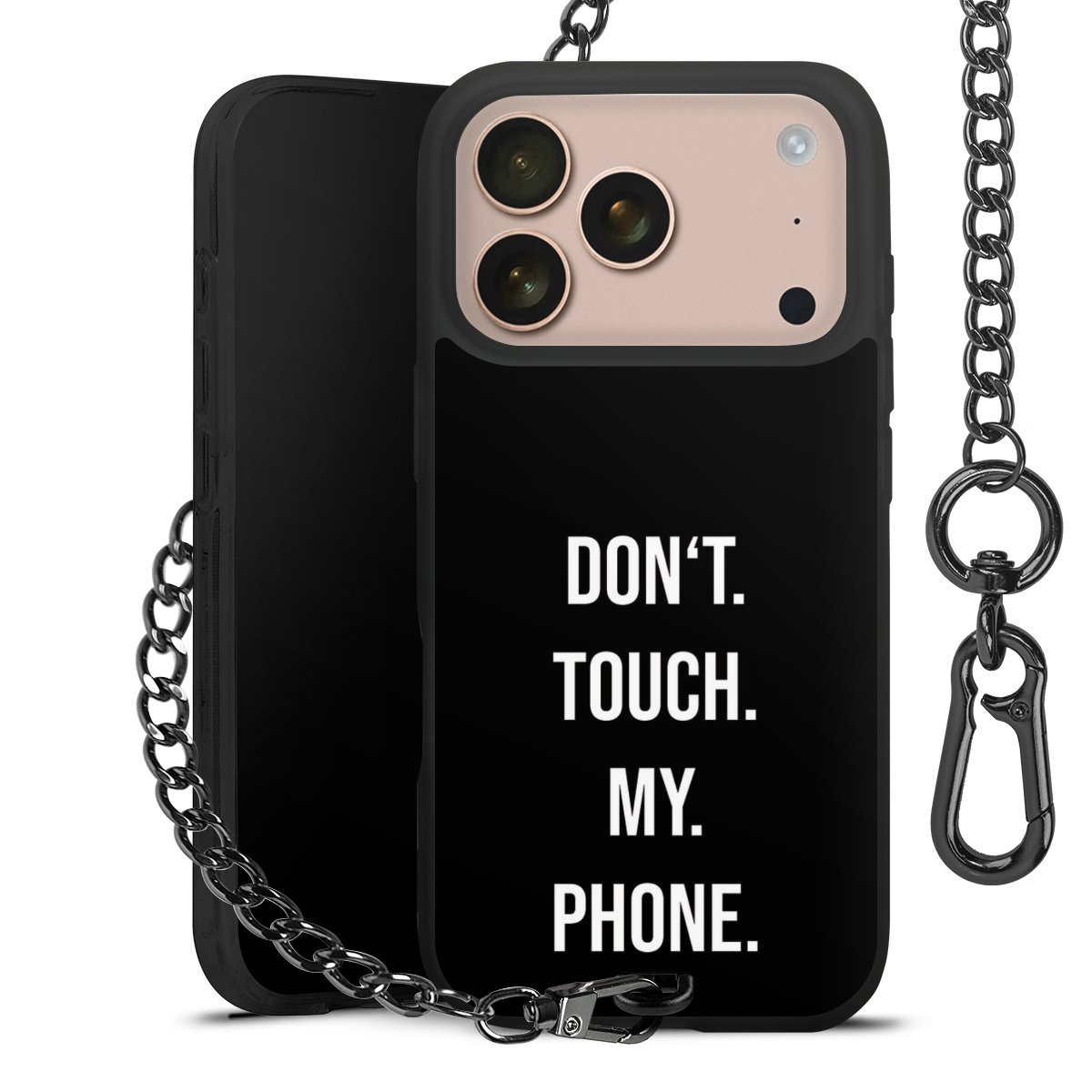 • Mattschwarze Handyhülle mit Metallkette