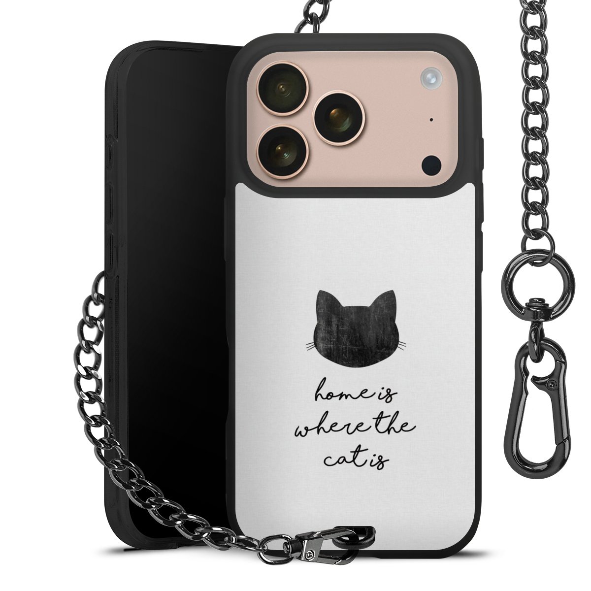 • Mattschwarze Handyhülle mit Metallkette