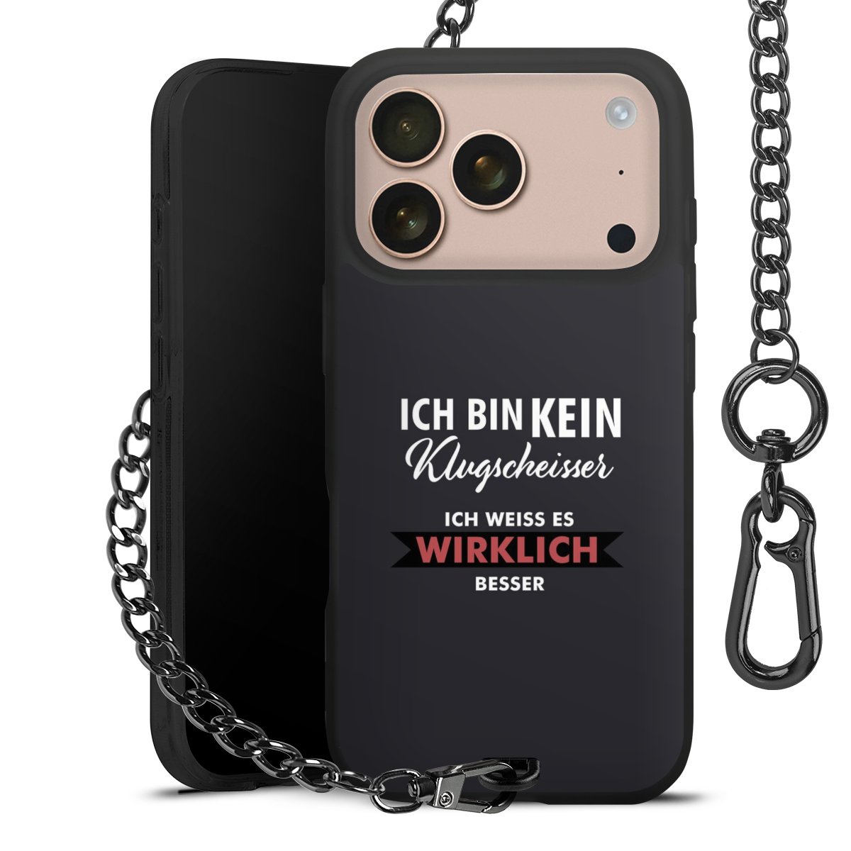 - Mattschwarze Handyhülle mit Metallkette