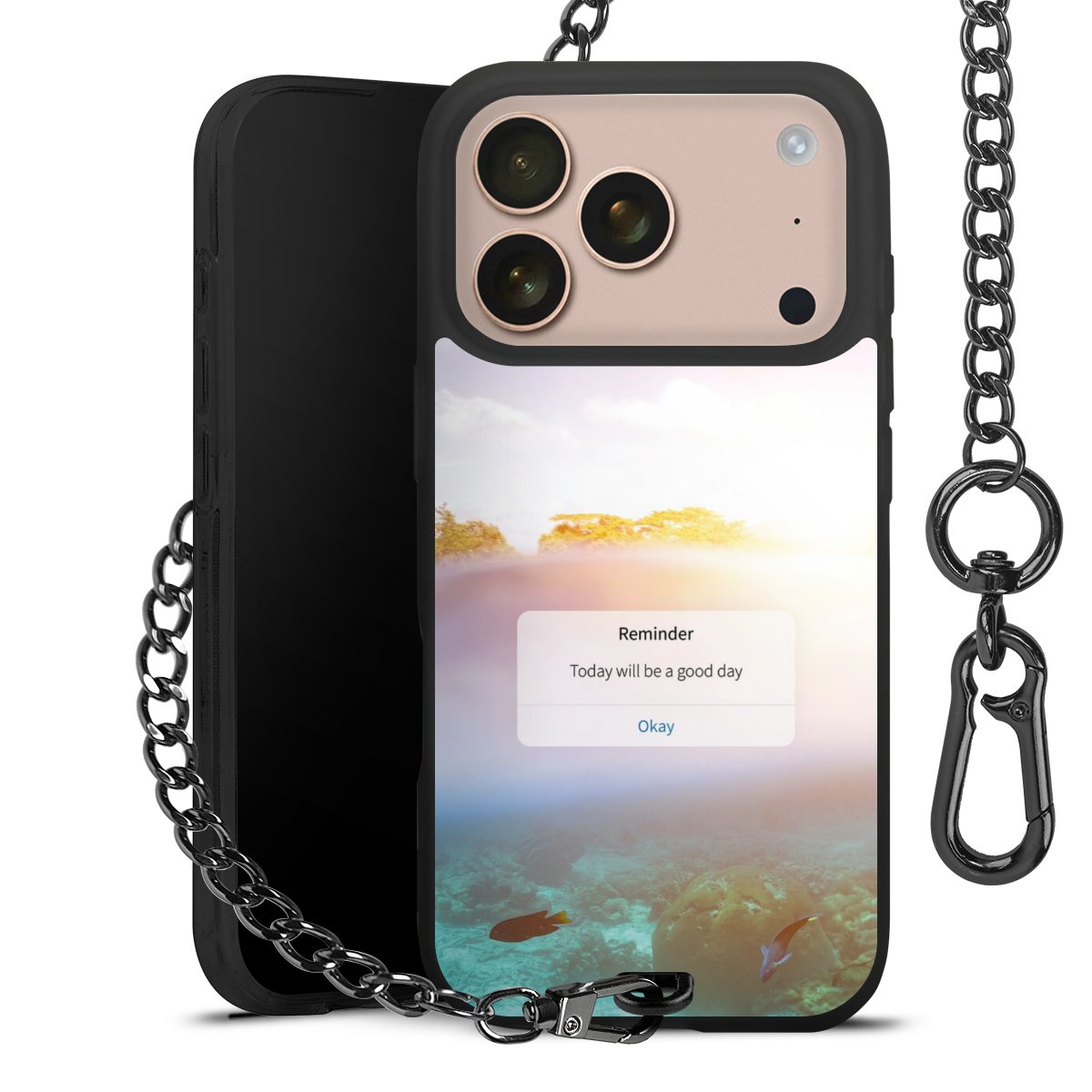 • Mattschwarze Handyhülle mit Metallkette