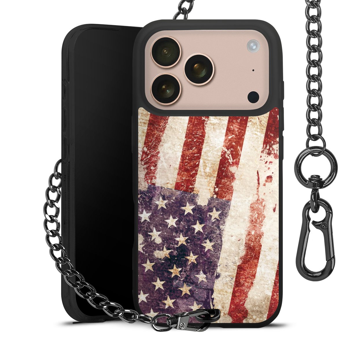 • Mattschwarze Handyhülle mit Metallkette
