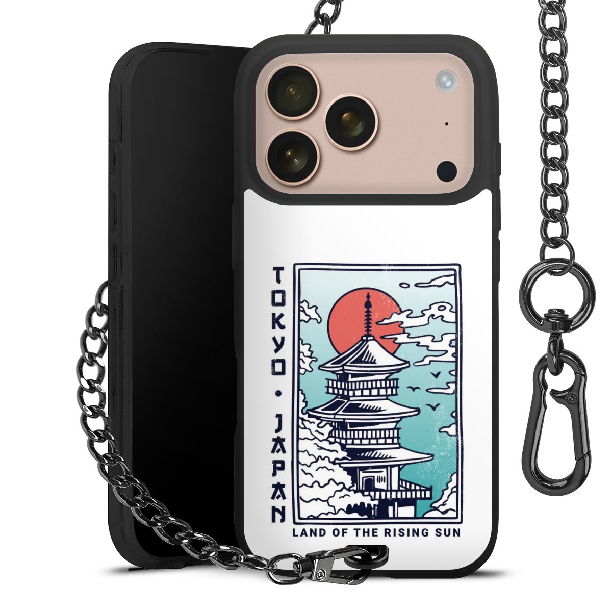 • Mattschwarze Handyhülle mit Metallkette
