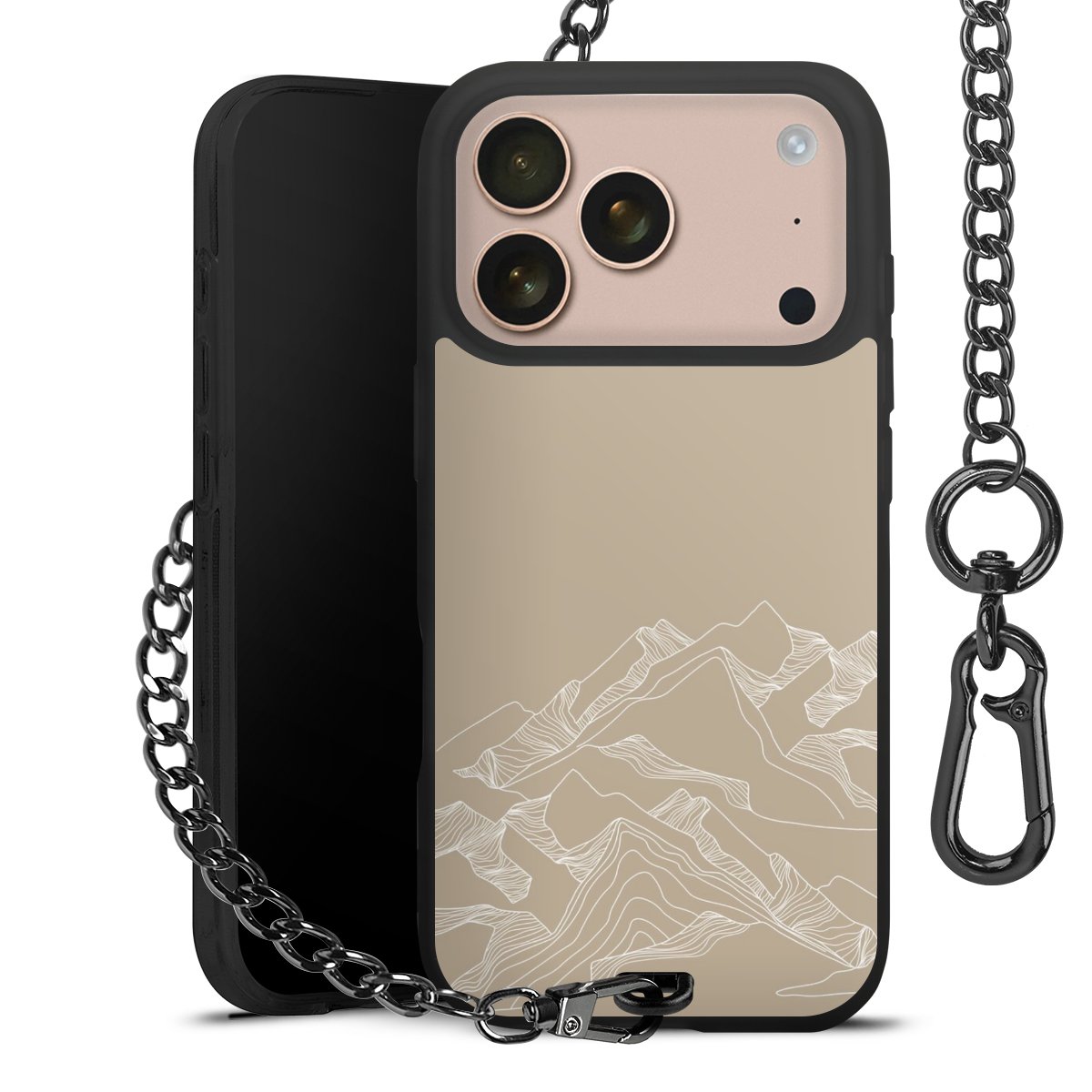 - Mattschwarze Handyhülle mit Metallkette