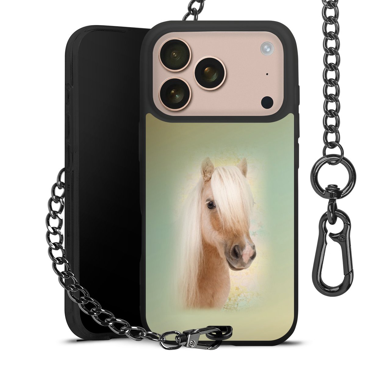 • Mattschwarze Handyhülle mit Metallkette