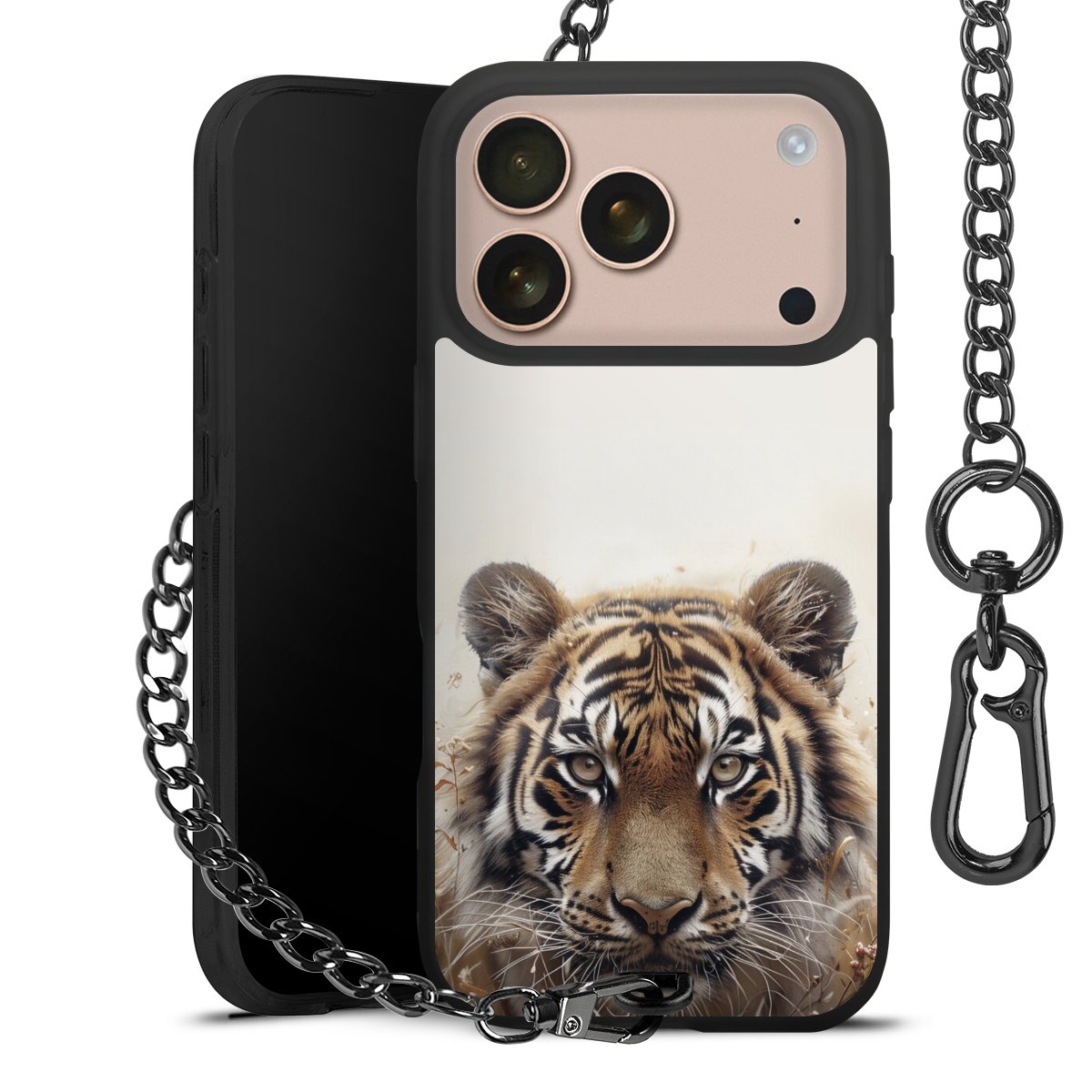 • Mattschwarze Handyhülle mit Metallkette