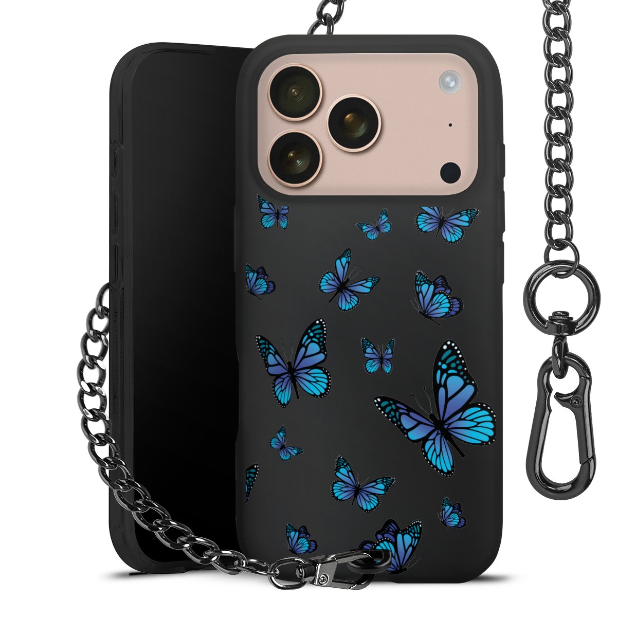 • Mattschwarze Handyhülle mit Metallkette