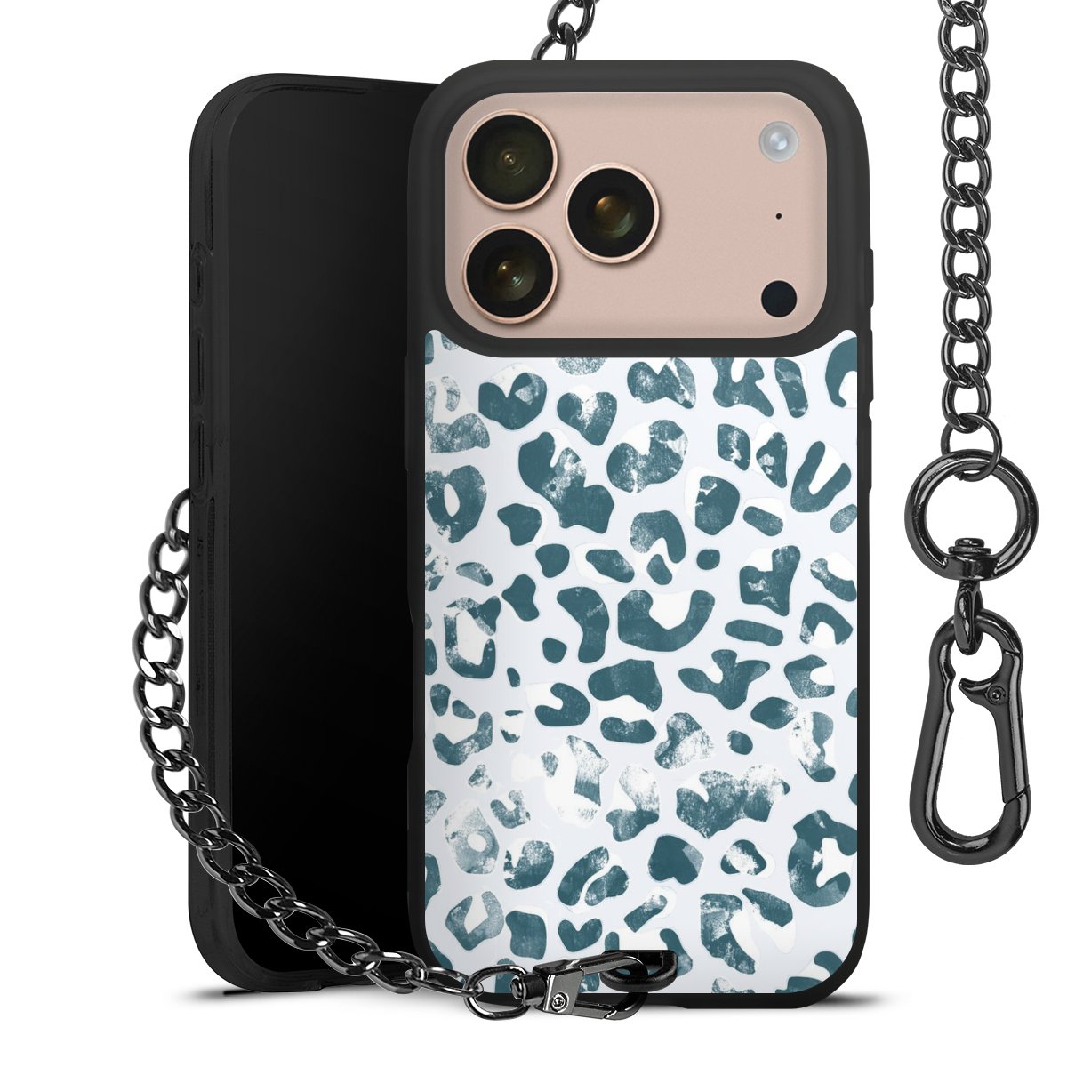 • Mattschwarze Handyhülle mit Metallkette
