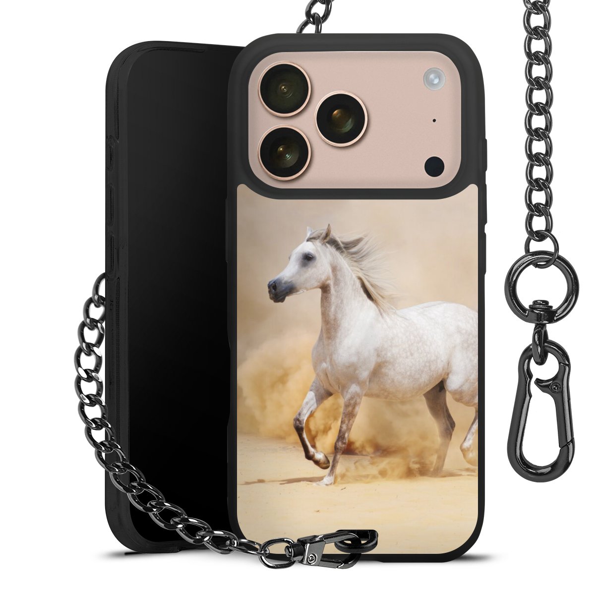• Mattschwarze Handyhülle mit Metallkette