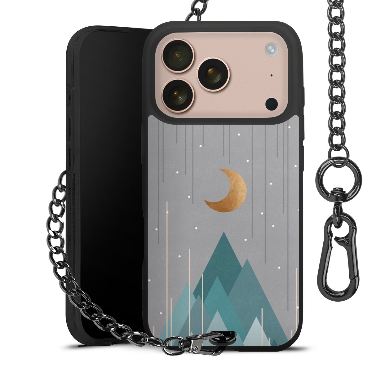 • Mattschwarze Handyhülle mit Metallkette