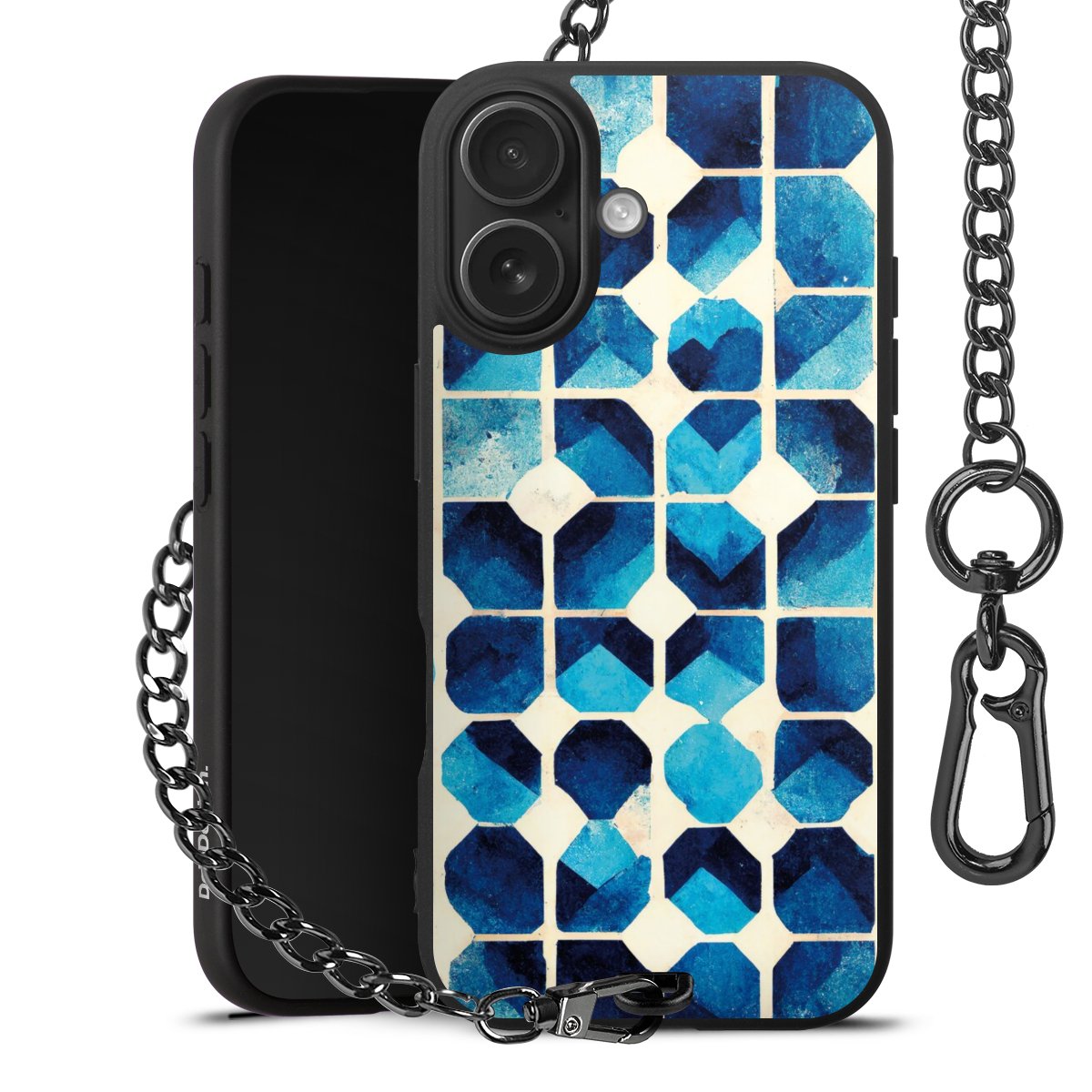 • Mattschwarze Handyhülle mit Metallkette