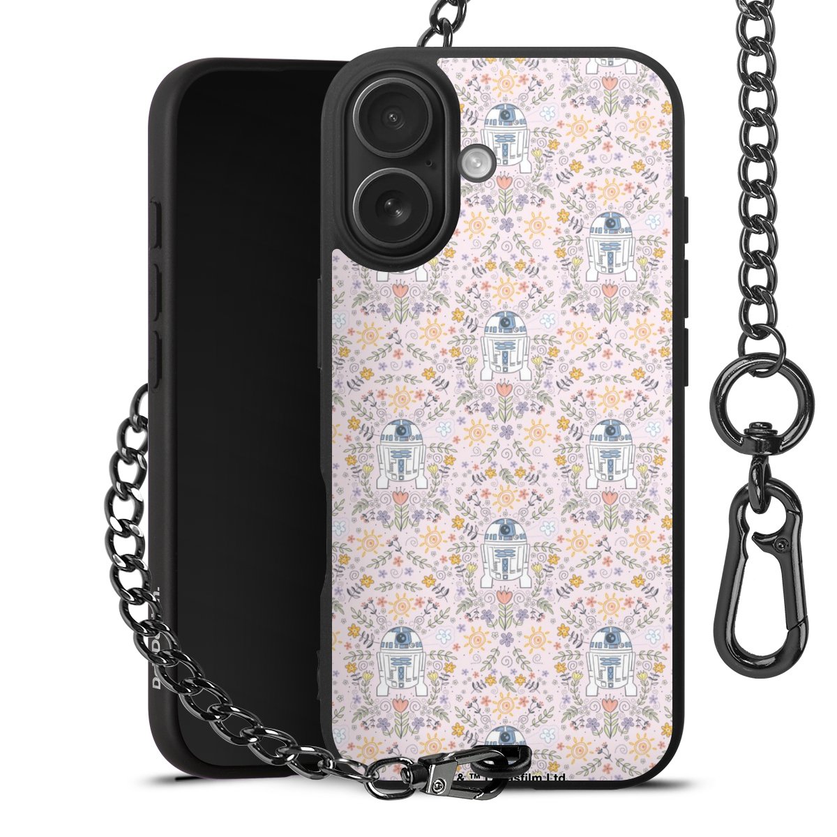 • Mattschwarze Handyhülle mit Metallkette