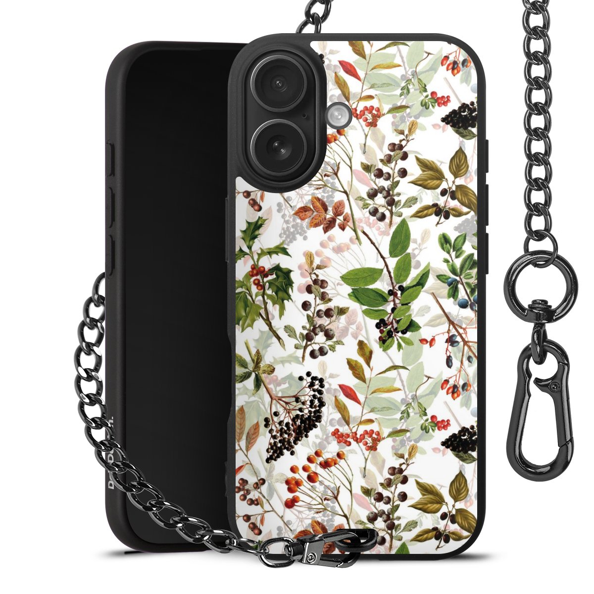 • Mattschwarze Handyhülle mit Metallkette