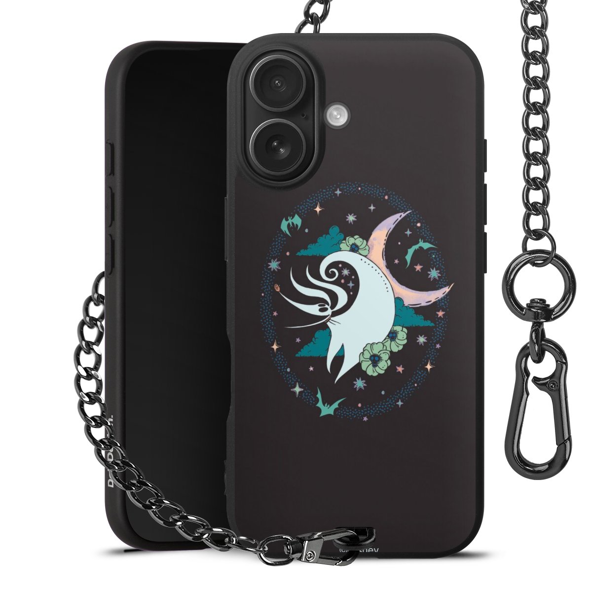 • Mattschwarze Handyhülle mit Metallkette