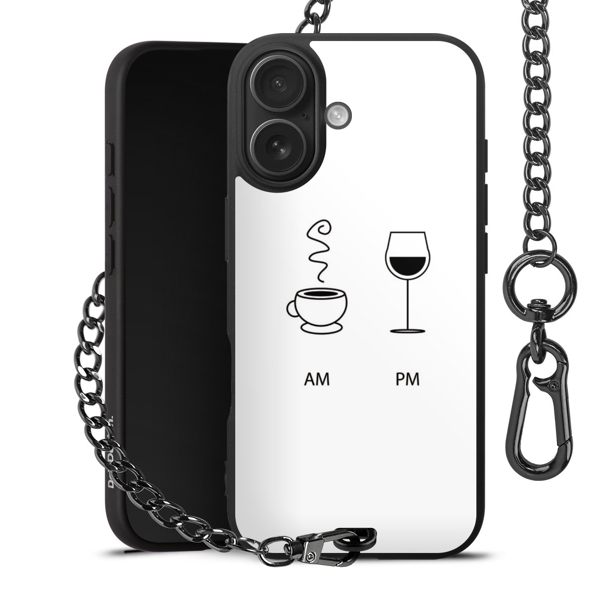 Die mattschwarze Silikon-Handyhülle besteht aus robustem TPU (thermoplastisches Polyurethan). Sie ist flexibel und schützt Dein Smartphone vor Stößen und Kratzern. Die Kette sowie der Karabinerhaken sind aus Metall in Gunmetal-Optik gefertigt. Für dieses Produkt kommen ausschließlich TÜV-geprüfte Materialien zum Einsatz.