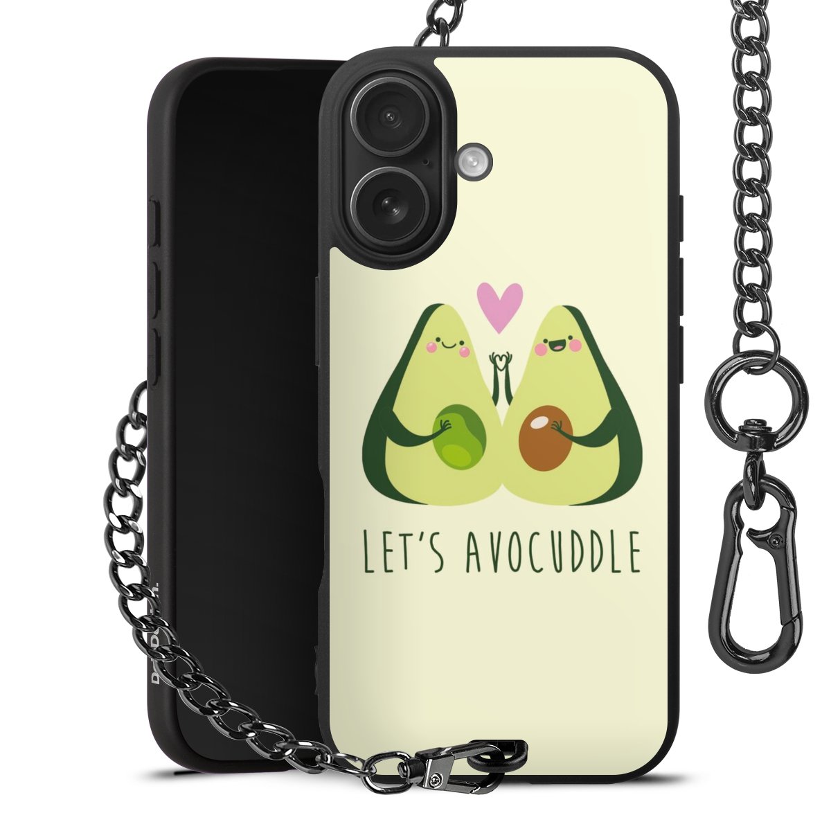 Die mattschwarze Silikon-Handyhülle besteht aus robustem TPU (thermoplastisches Polyurethan). Sie ist flexibel und schützt Dein Smartphone vor Stößen und Kratzern. Die Kette sowie der Karabinerhaken sind aus Metall in Gunmetal-Optik gefertigt. Für dieses Produkt kommen ausschließlich TÜV-geprüfte Materialien zum Einsatz.