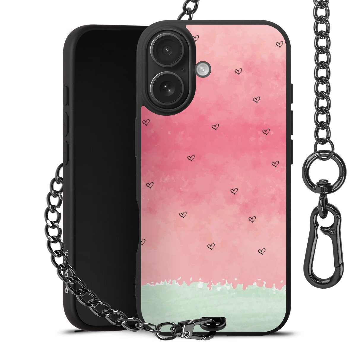 Die mattschwarze Silikon-Handyhülle besteht aus robustem TPU (thermoplastisches Polyurethan). Sie ist flexibel und schützt Dein Smartphone vor Stößen und Kratzern. Die Kette sowie der Karabinerhaken sind aus Metall in Gunmetal-Optik gefertigt. Für dieses Produkt kommen ausschließlich TÜV-geprüfte Materialien zum Einsatz.