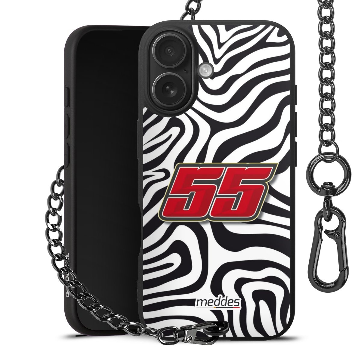 • Mattschwarze Handyhülle mit Metallkette