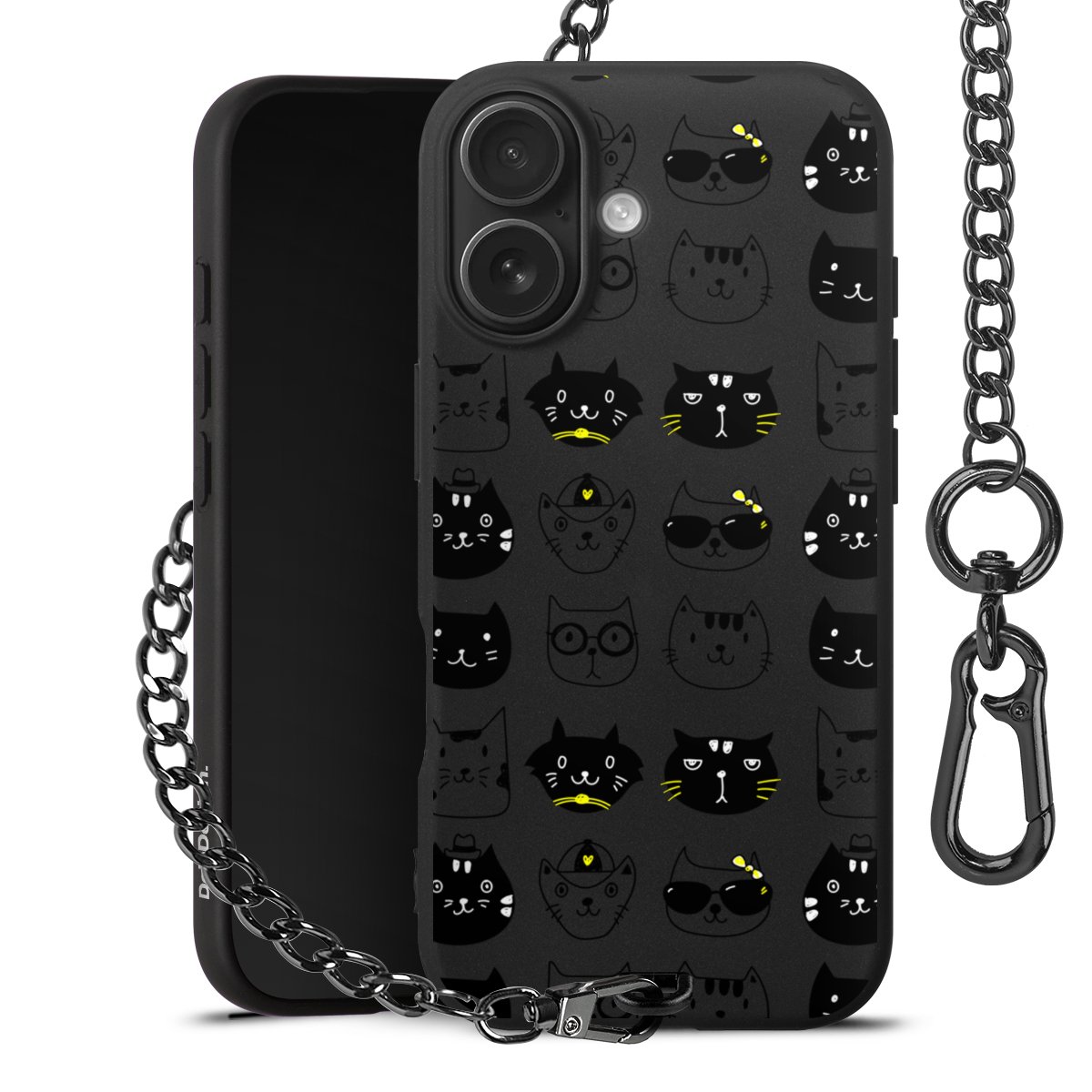 - Mattschwarze Handyhülle mit Metallkette