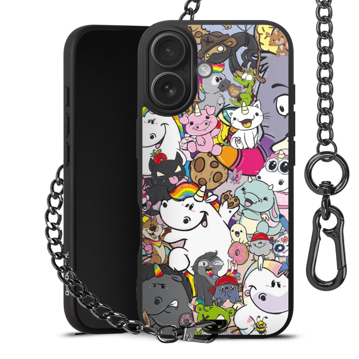 Die Handyhülle verfügt über eine mittig am unteren Rand platzierte Öse, an der die Metallkette stabil befestigt ist. Bestelle die Hülle einfach für Dein Smartphone-Modell, dann passt sie wie angegossen und Du brauchst sie bloß einmal anzudrücken. Handy in die Tasche, Karabiner an den Hosenbund – schon kann die Party starten.