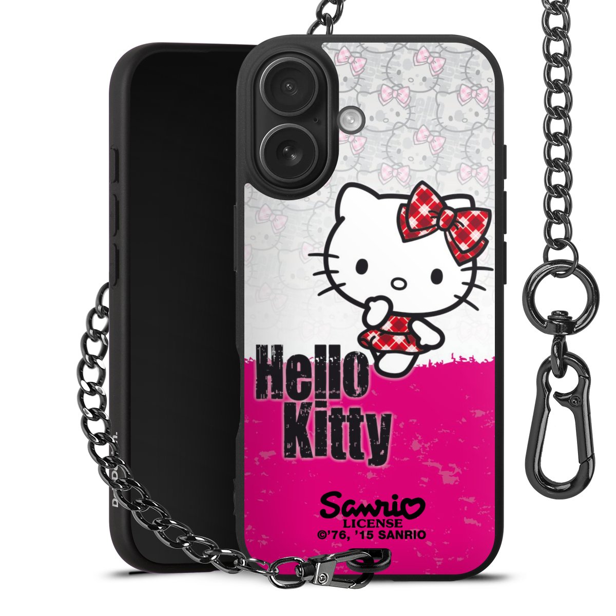 Die mattschwarze Silikon-Handyhülle besteht aus robustem TPU (thermoplastisches Polyurethan). Sie ist flexibel und schützt Dein Smartphone vor Stößen und Kratzern. Die Kette sowie der Karabinerhaken sind aus Metall in Gunmetal-Optik gefertigt. Für dieses Produkt kommen ausschließlich TÜV-geprüfte Materialien zum Einsatz.