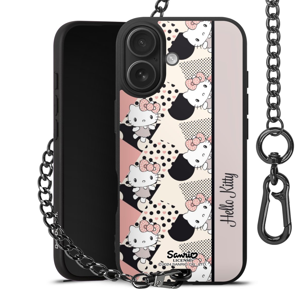 - Mattschwarze Handyhülle mit Metallkette
