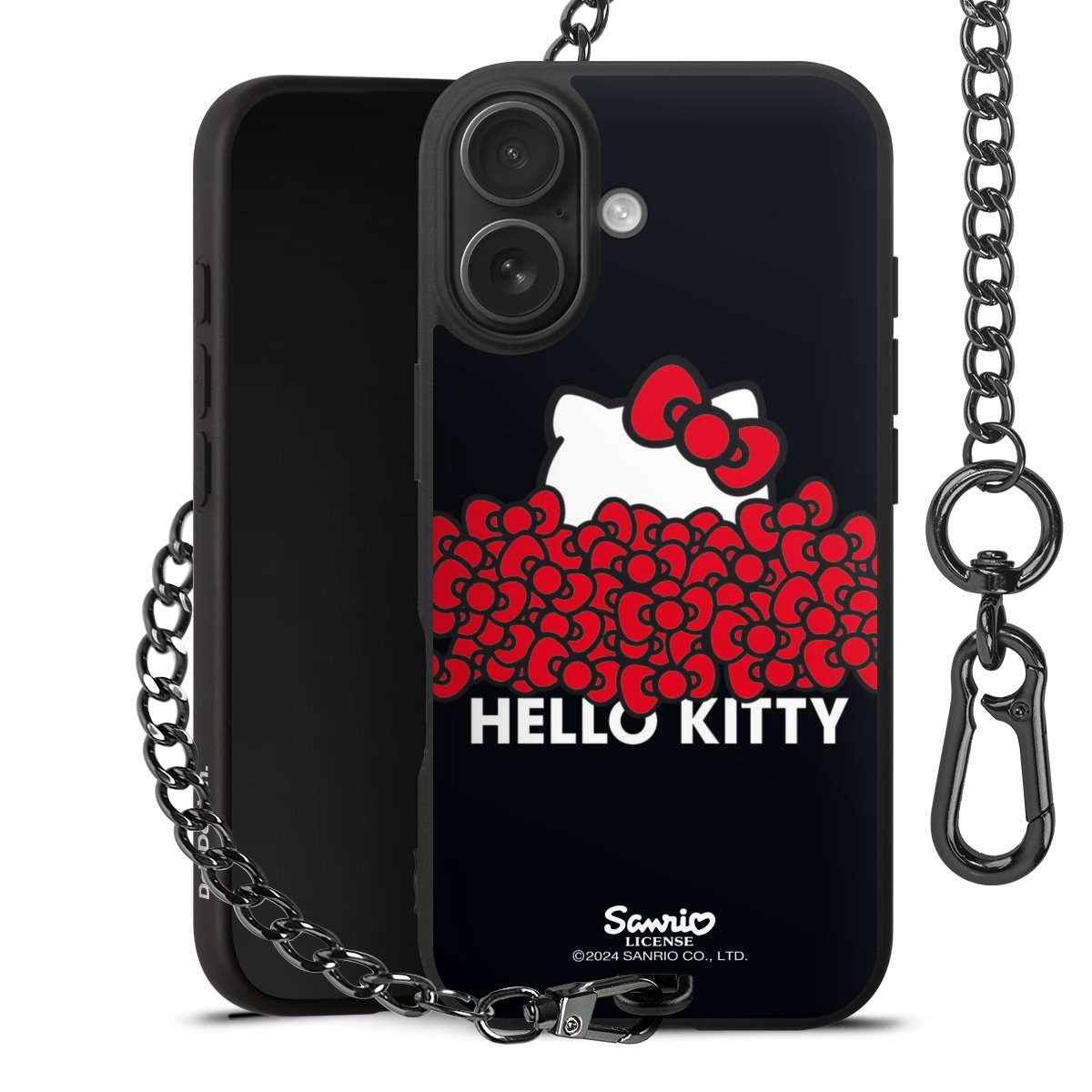 Die mattschwarze Silikon-Handyhülle besteht aus robustem TPU (thermoplastisches Polyurethan). Sie ist flexibel und schützt Dein Smartphone vor Stößen und Kratzern. Die Kette sowie der Karabinerhaken sind aus Metall in Gunmetal-Optik gefertigt. Für dieses Produkt kommen ausschließlich TÜV-geprüfte Materialien zum Einsatz.