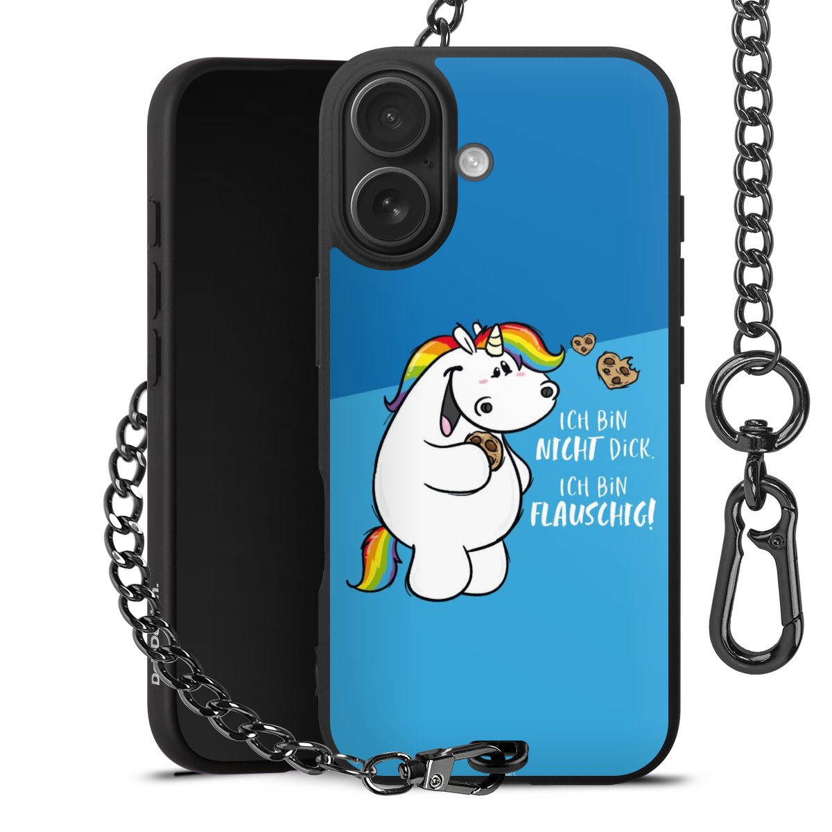 Die mattschwarze Silikon-Handyhülle besteht aus robustem TPU (thermoplastisches Polyurethan). Sie ist flexibel und schützt Dein Smartphone vor Stößen und Kratzern. Die Kette sowie der Karabinerhaken sind aus Metall in Gunmetal-Optik gefertigt. Für dieses Produkt kommen ausschließlich TÜV-geprüfte Materialien zum Einsatz.