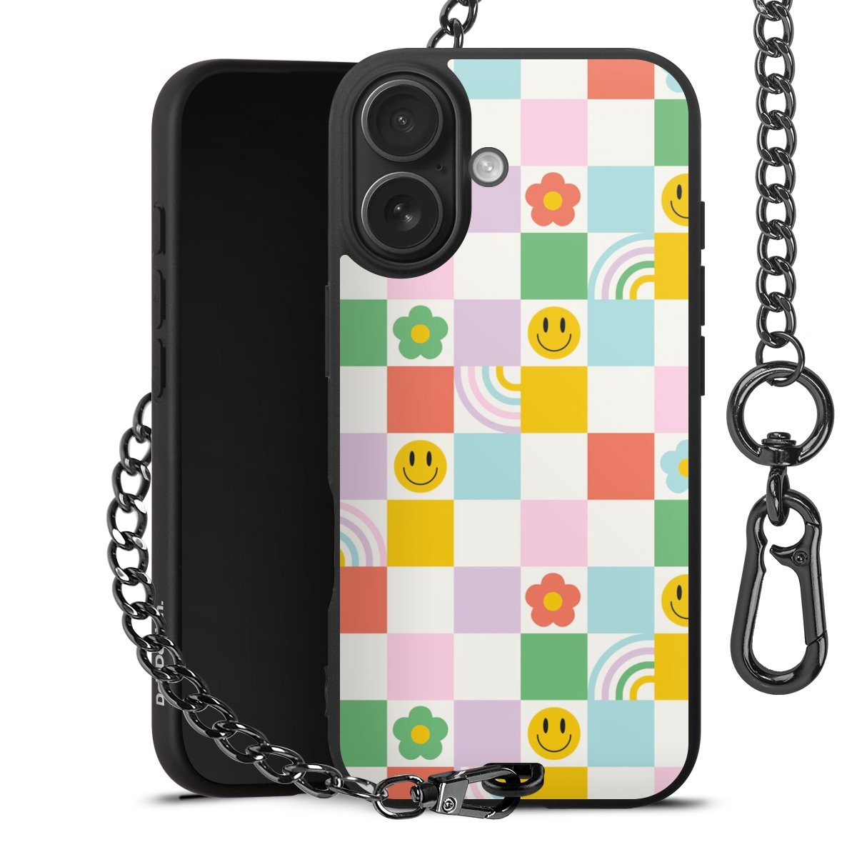 Die mattschwarze Silikon-Handyhülle besteht aus robustem TPU (thermoplastisches Polyurethan). Sie ist flexibel und schützt Dein Smartphone vor Stößen und Kratzern. Die Kette sowie der Karabinerhaken sind aus Metall in Gunmetal-Optik gefertigt. Für dieses Produkt kommen ausschließlich TÜV-geprüfte Materialien zum Einsatz.