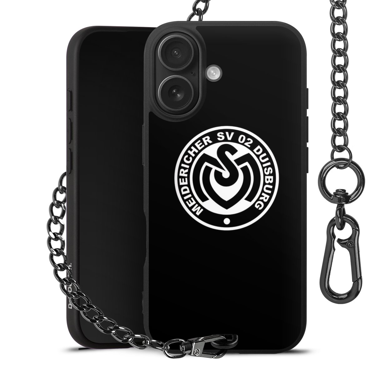 Die mattschwarze Silikon-Handyhülle besteht aus robustem TPU (thermoplastisches Polyurethan). Sie ist flexibel und schützt Dein Smartphone vor Stößen und Kratzern. Die Kette sowie der Karabinerhaken sind aus Metall in Gunmetal-Optik gefertigt. Für dieses Produkt kommen ausschließlich TÜV-geprüfte Materialien zum Einsatz.