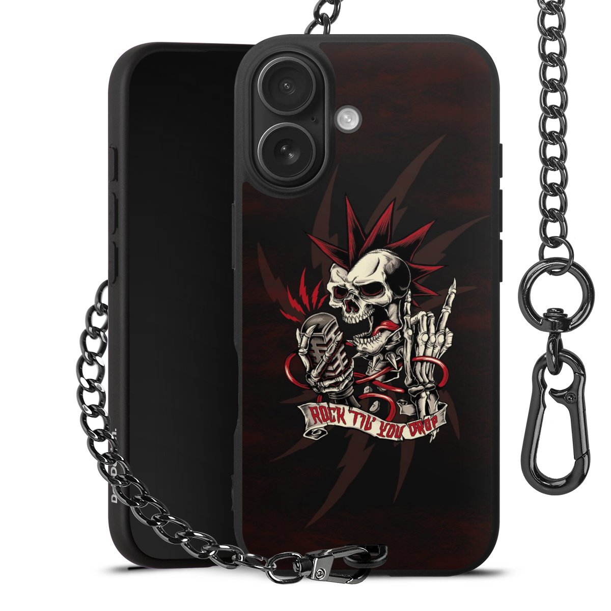 Die mattschwarze Silikon-Handyhülle besteht aus robustem TPU (thermoplastisches Polyurethan). Sie ist flexibel und schützt Dein Smartphone vor Stößen und Kratzern. Die Kette sowie der Karabinerhaken sind aus Metall in Gunmetal-Optik gefertigt. Für dieses Produkt kommen ausschließlich TÜV-geprüfte Materialien zum Einsatz.