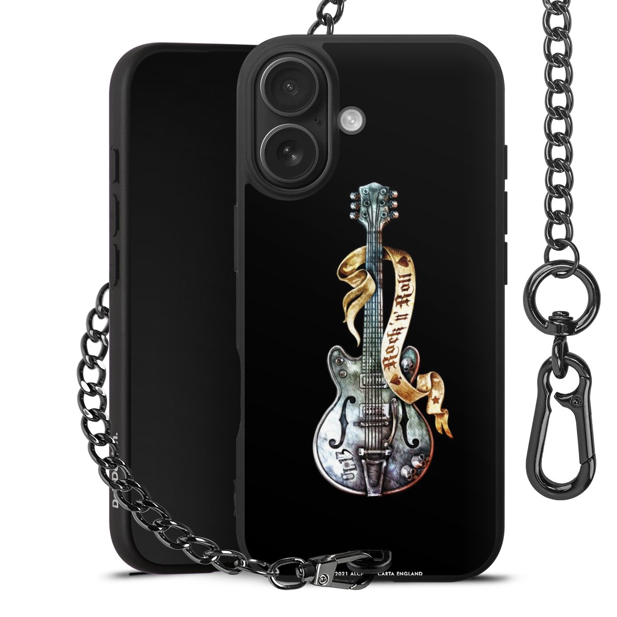 • Mattschwarze Handyhülle mit Metallkette