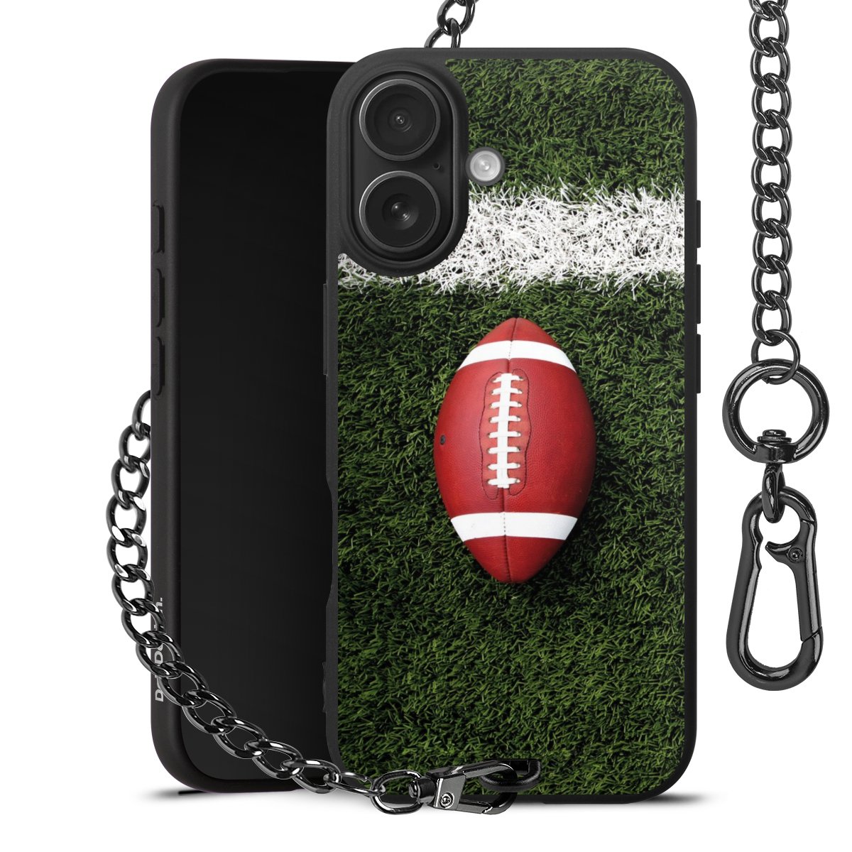 - Mattschwarze Handyhülle mit Metallkette