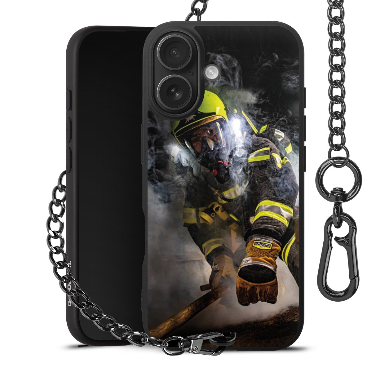 Die mattschwarze Silikon-Handyhülle besteht aus robustem TPU (thermoplastisches Polyurethan). Sie ist flexibel und schützt Dein Smartphone vor Stößen und Kratzern. Die Kette sowie der Karabinerhaken sind aus Metall in Gunmetal-Optik gefertigt. Für dieses Produkt kommen ausschließlich TÜV-geprüfte Materialien zum Einsatz.