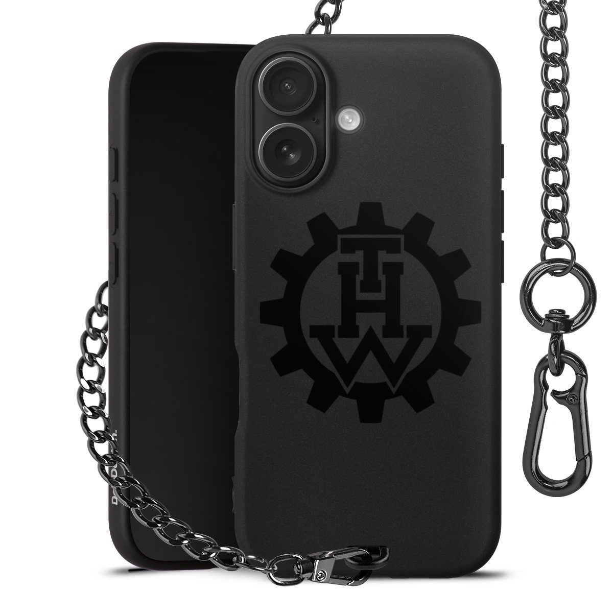 • Mattschwarze Handyhülle mit Metallkette