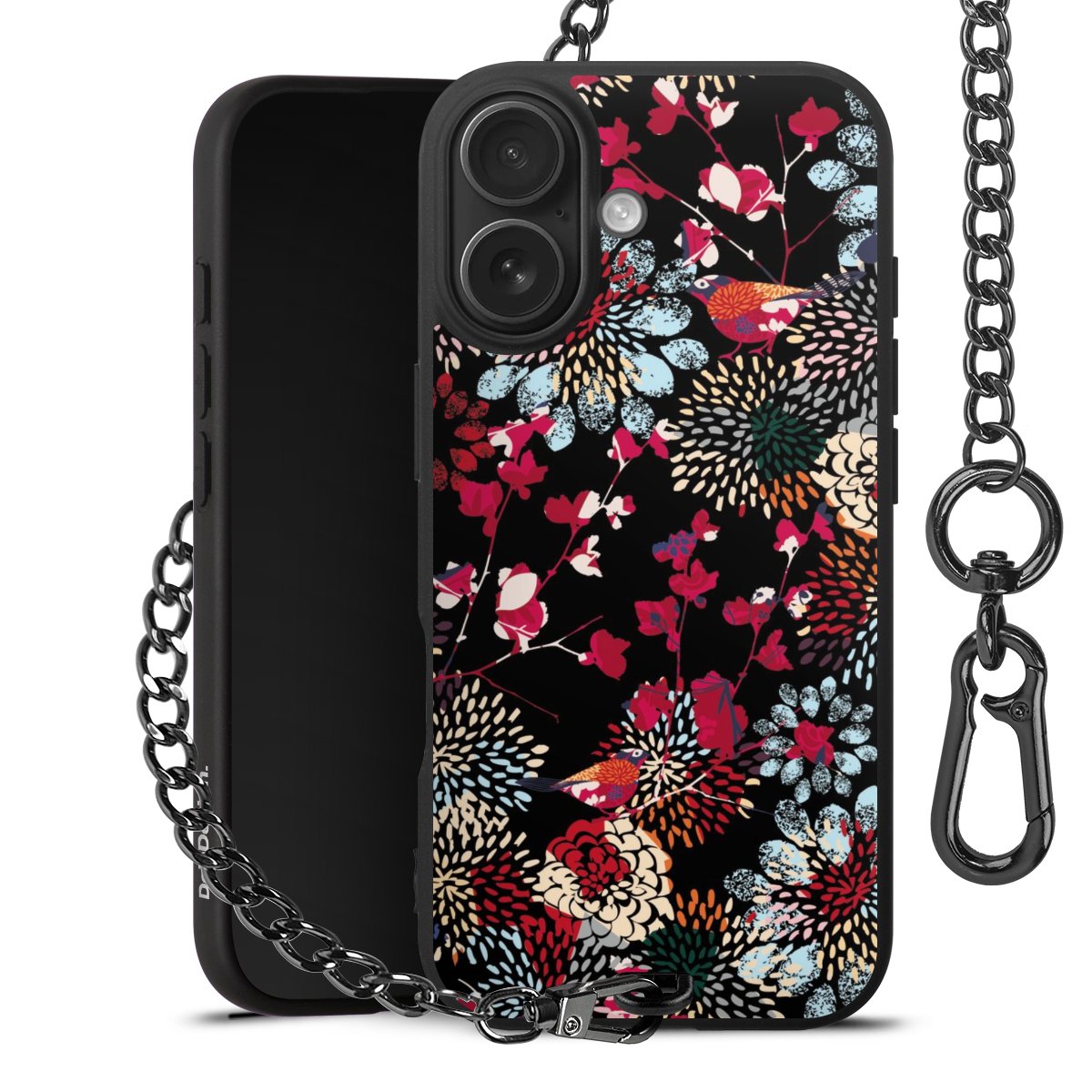 - Mattschwarze Handyhülle mit Metallkette