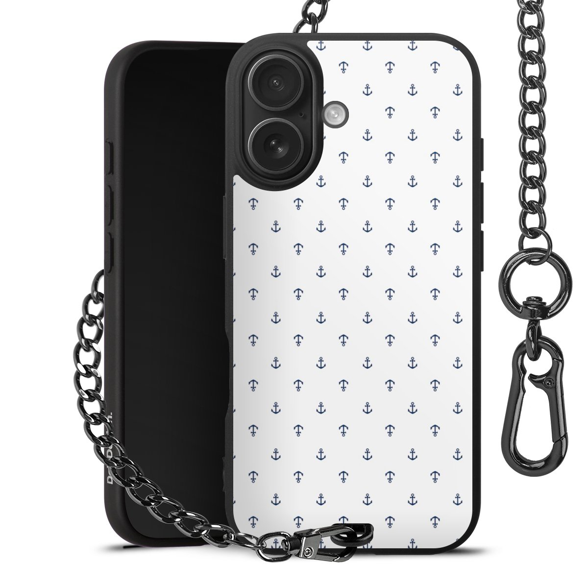 - Mattschwarze Handyhülle mit Metallkette