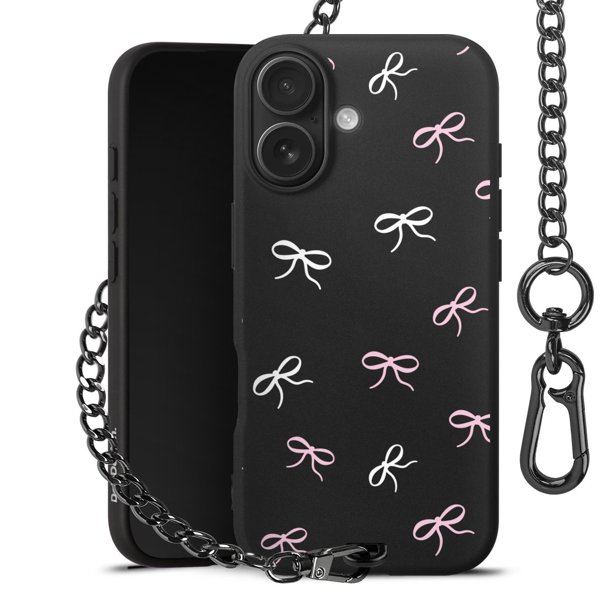 - Mattschwarze Handyhülle mit Metallkette