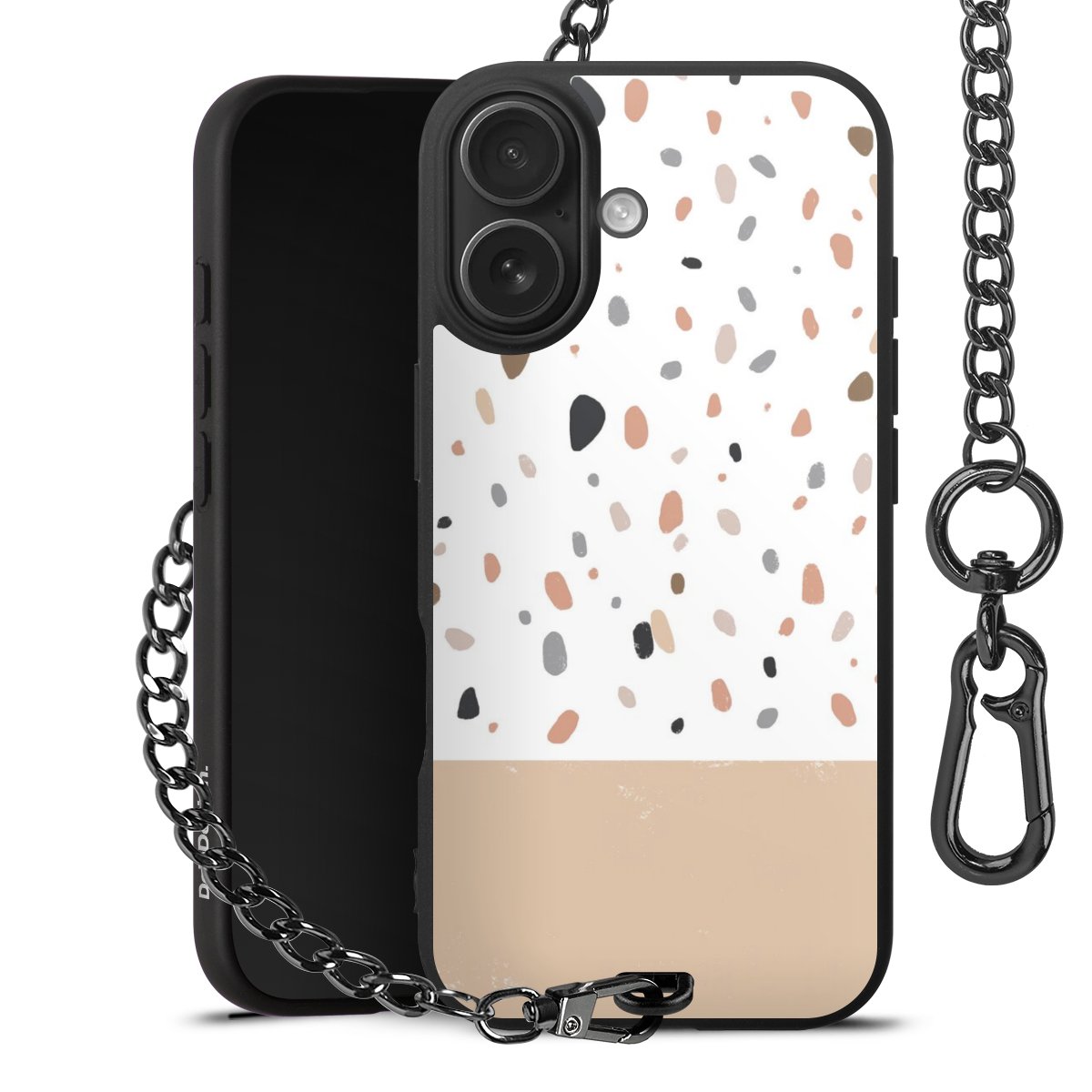 Die mattschwarze Silikon-Handyhülle besteht aus robustem TPU (thermoplastisches Polyurethan). Sie ist flexibel und schützt Dein Smartphone vor Stößen und Kratzern. Die Kette sowie der Karabinerhaken sind aus Metall in Gunmetal-Optik gefertigt. Für dieses Produkt kommen ausschließlich TÜV-geprüfte Materialien zum Einsatz.